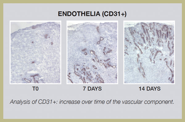 - The increase of vessels in the granulation tissue already seen at the 7th day and a progressive increase at the 15th day