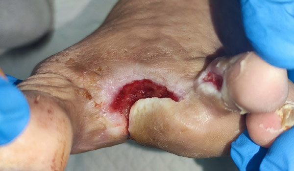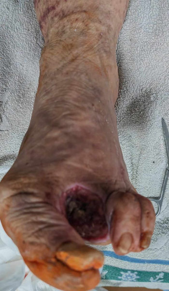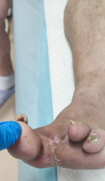 At first visit in our department diagnosed with osteomyelitis of II nd and III rd metatarsal bone with MRSA infecion (directed antibiotic treatment) of bones, residual tendons and soft tissue, reamputated and heald with Vulnamin Gel from 29 th june 2023.